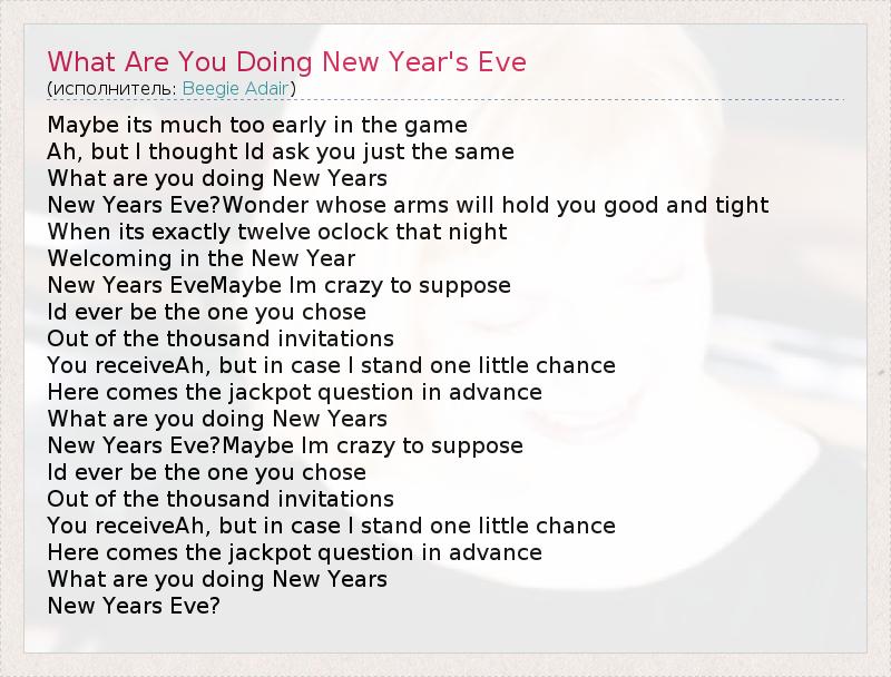 ГлавнаяИсполнителиBeegie AdairWhat Are You Doing New Year's Eve