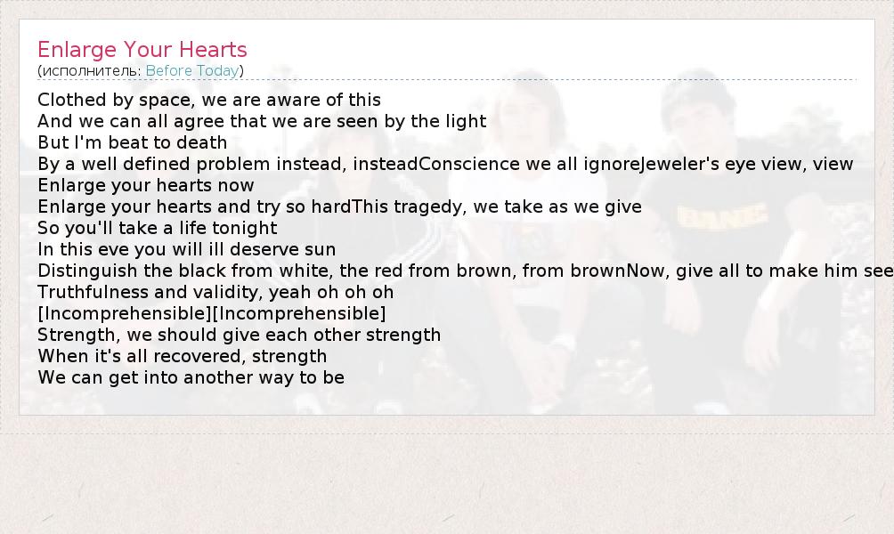 А как ты думаешь, о чем песня "Enlarge Your Hearts" ?