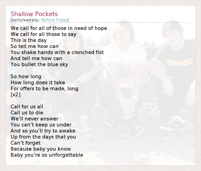 А как ты думаешь, о чем песня "Shallow Pockets" ?