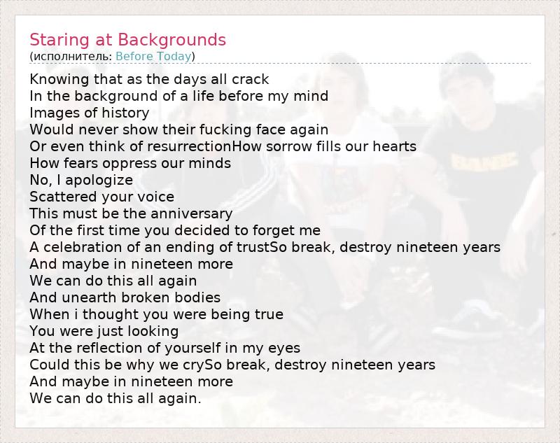 А как ты думаешь, о чем песня "Staring at Backgrounds" ?