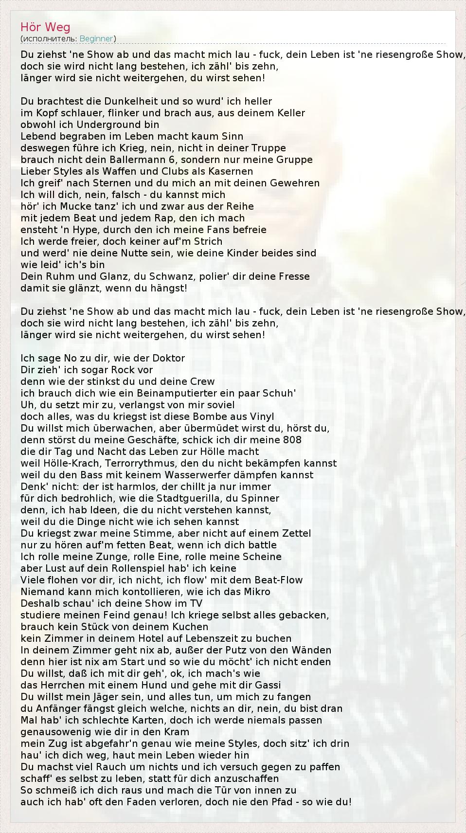 А как ты думаешь, о чем песня "Hör Weg" ?