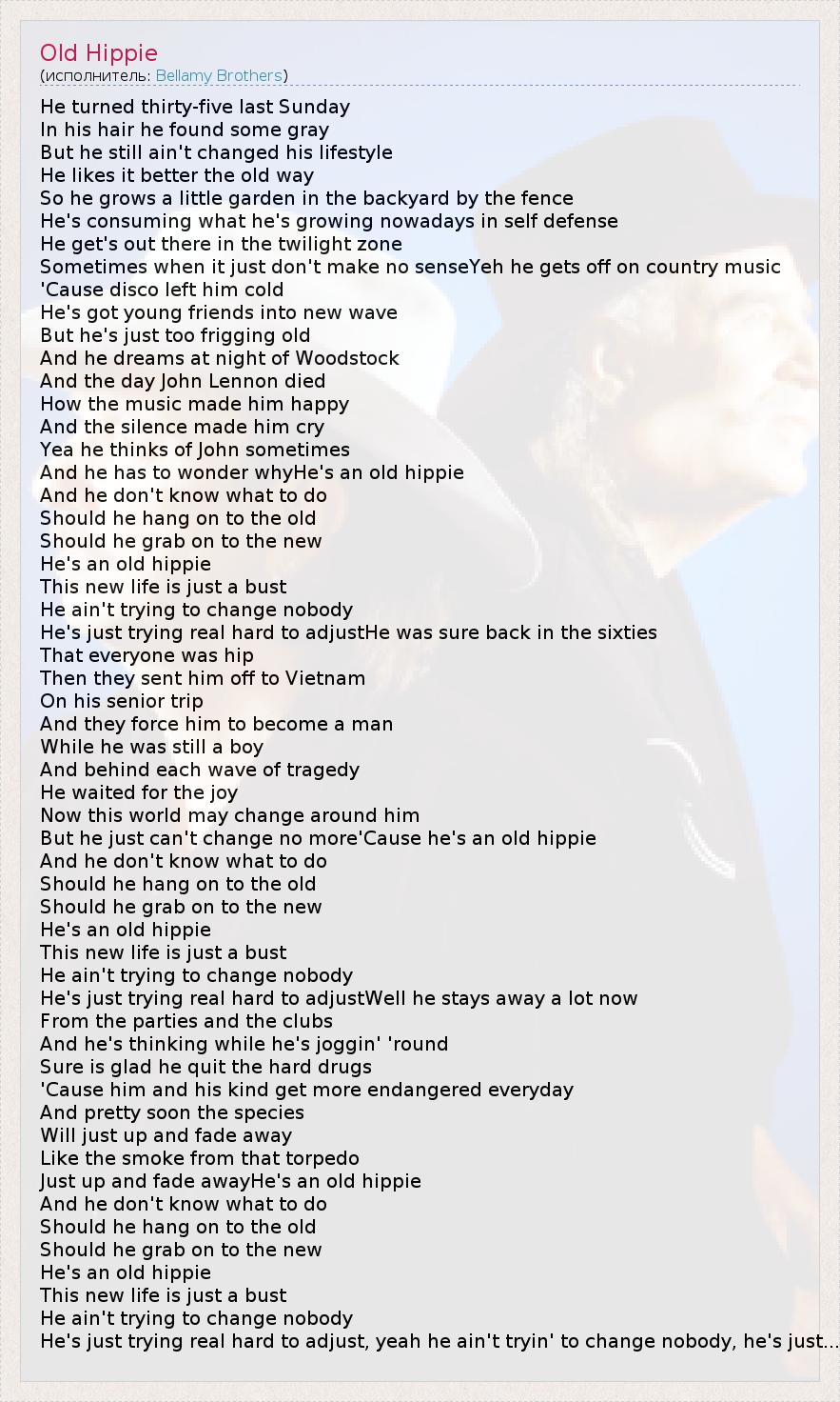 А как ты думаешь, о чем песня "Old Hippie" ?