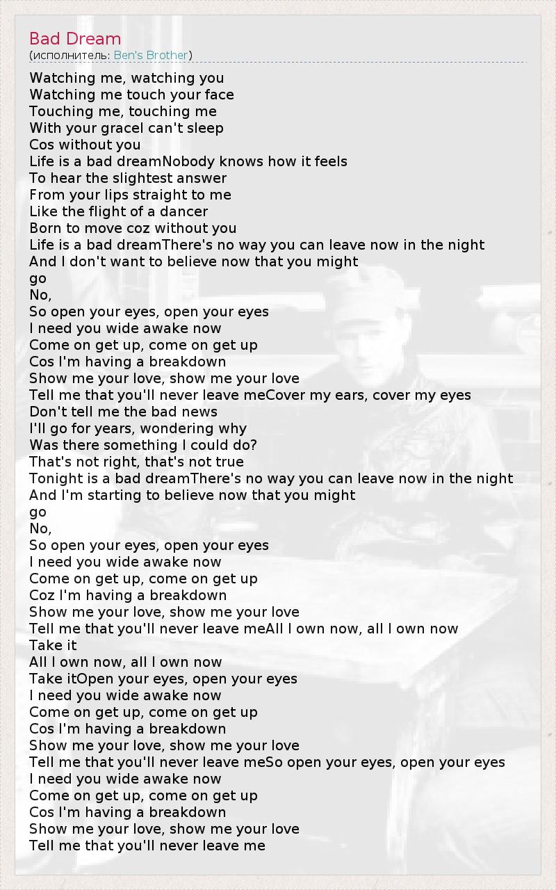 А как ты думаешь, о чем песня "Bad Dream" ?