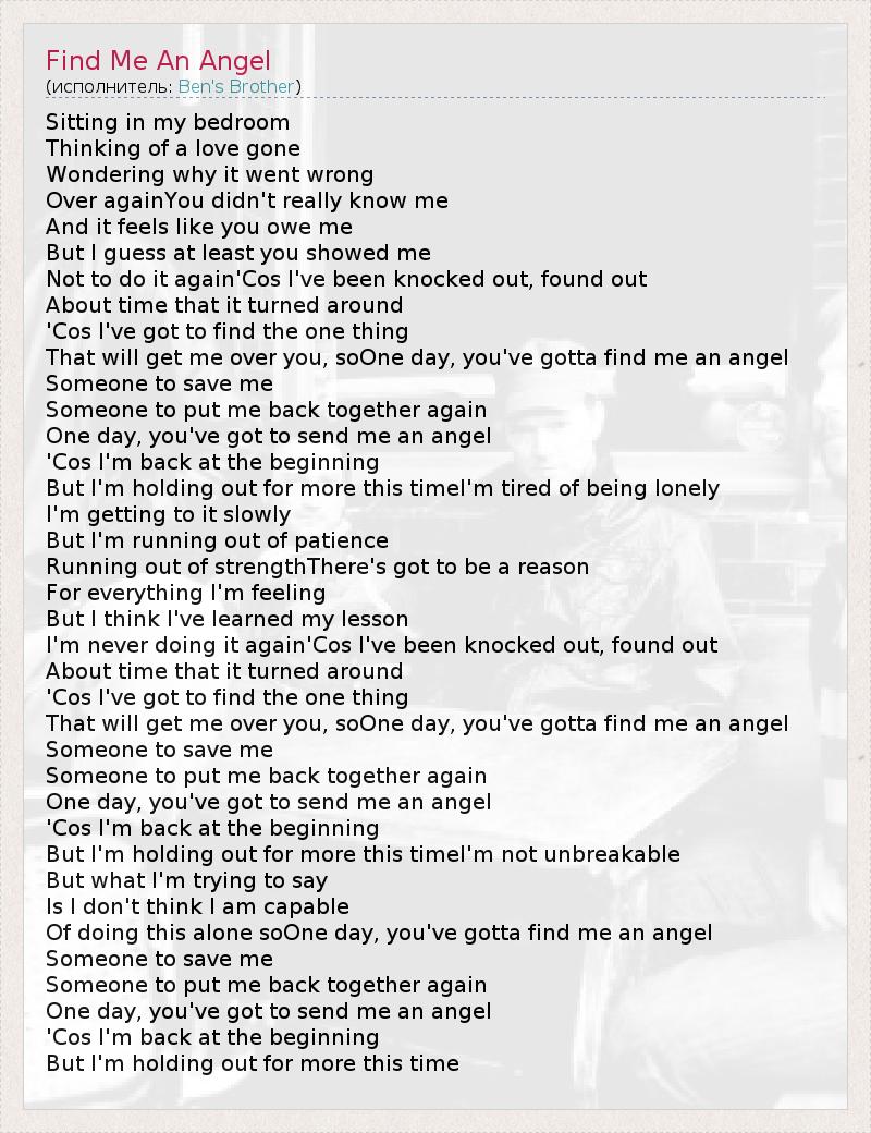 А как ты думаешь, о чем песня "Find Me An Angel" ?