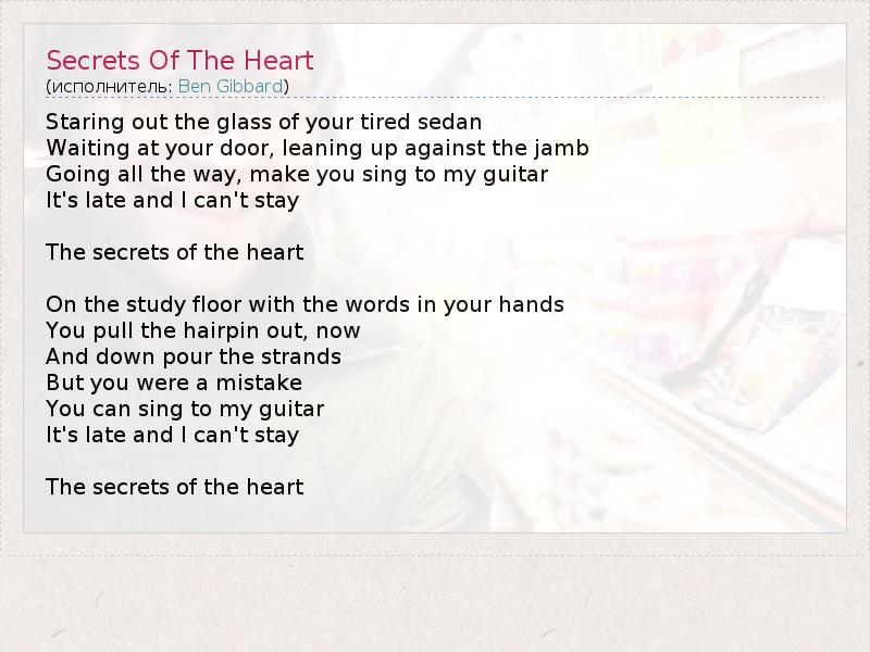 А как ты думаешь, о чем песня "Secrets Of The Heart" ?
