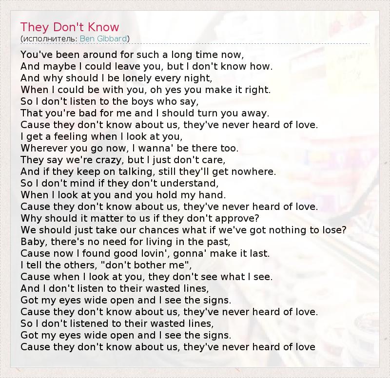 А как ты думаешь, о чем песня "They Don't Know" ?