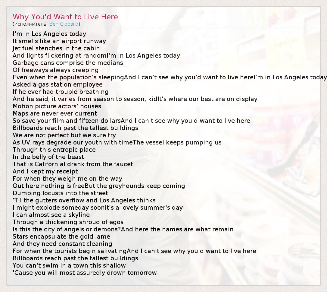 А как ты думаешь, о чем песня "Why You'd Want to Live Here" ?