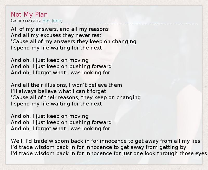 А как ты думаешь, о чем песня "Not My Plan" ?