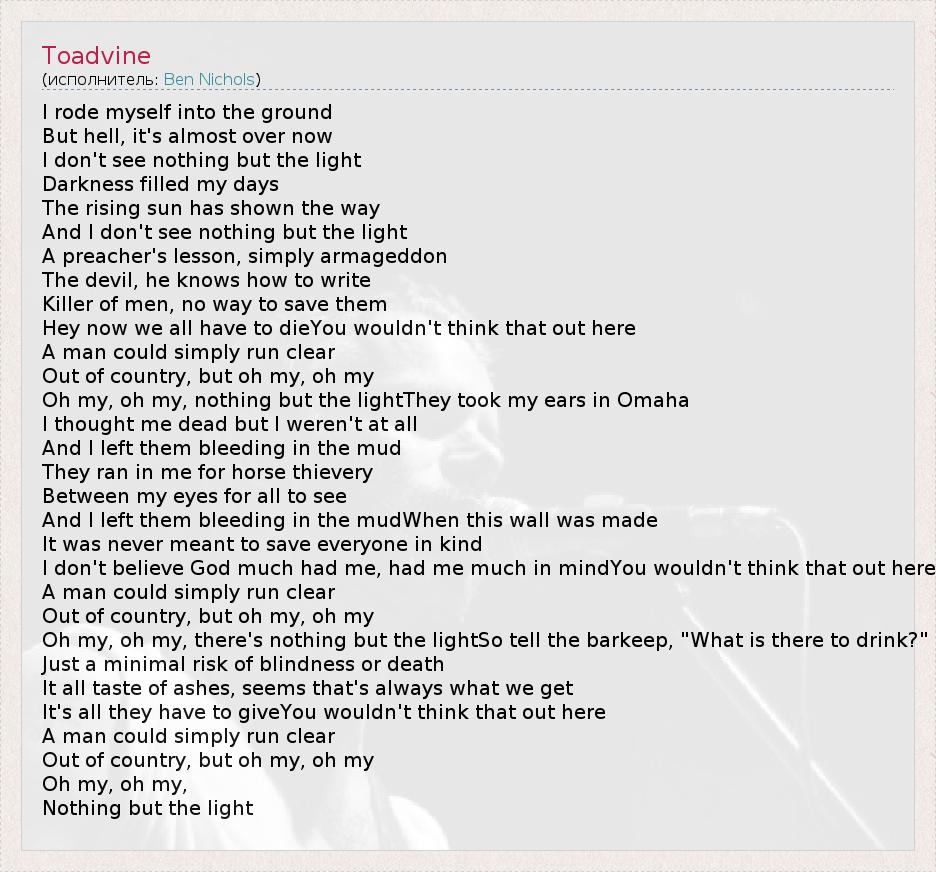 А как ты думаешь, о чем песня "Toadvine" ?
