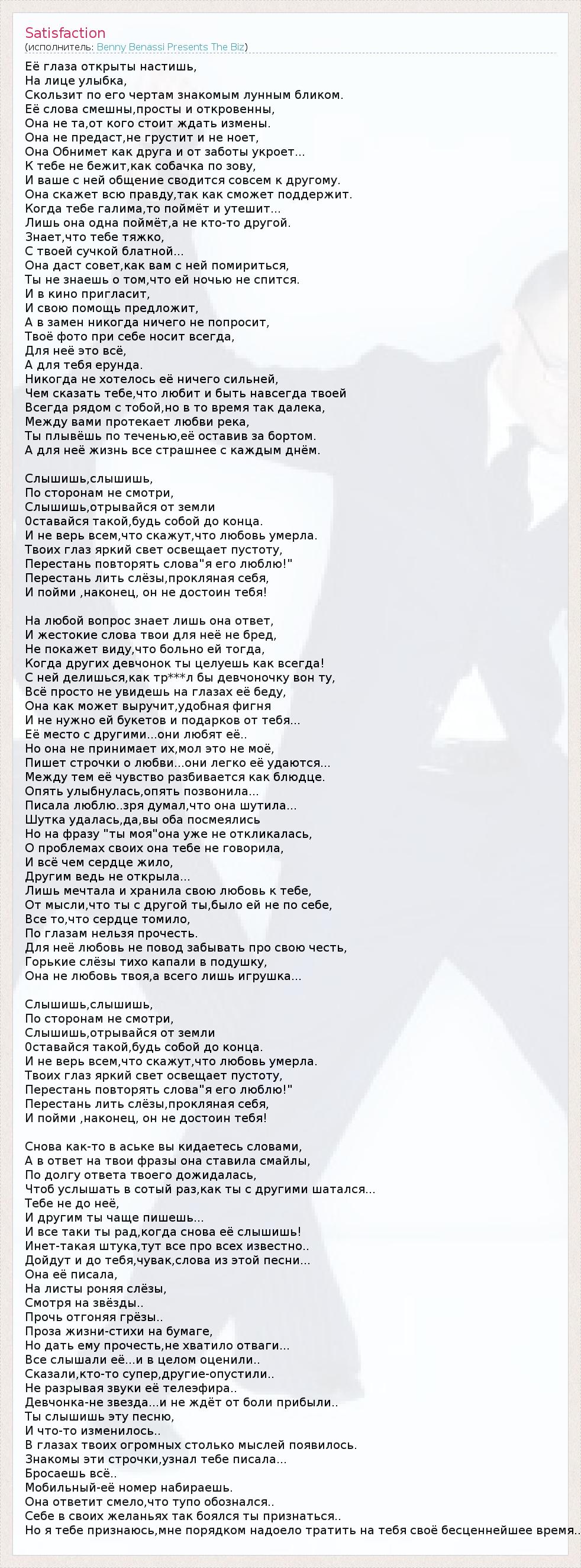 А как ты думаешь, о чем песня "Satisfaction" ?