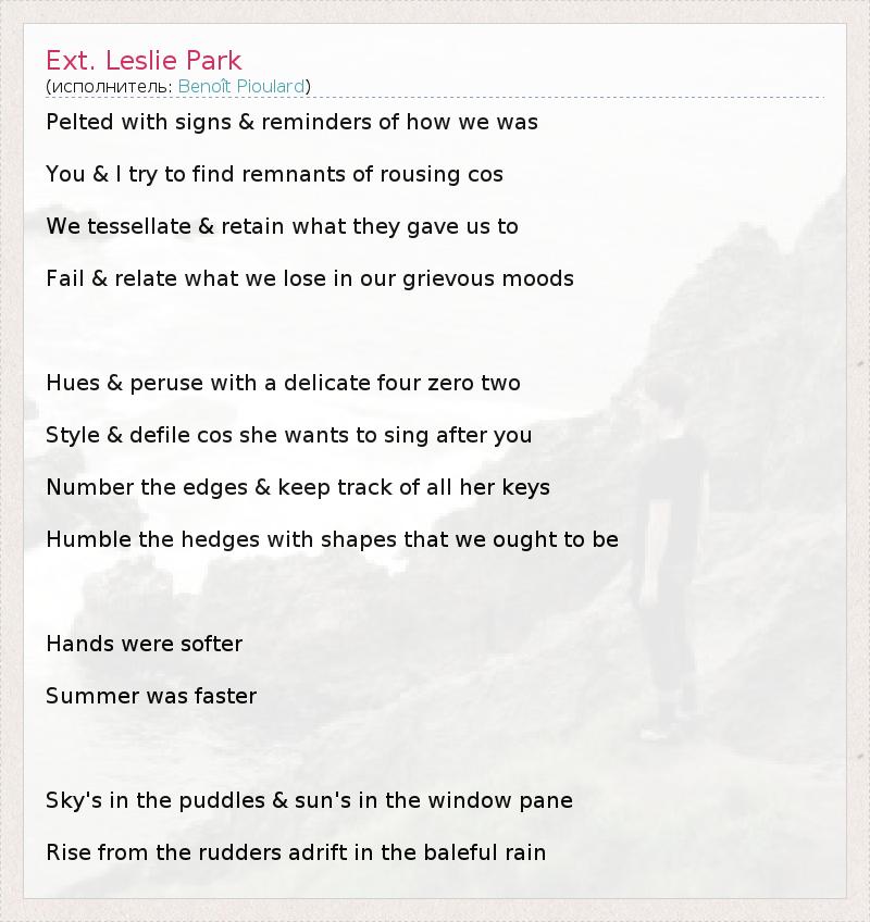 А как ты думаешь, о чем песня "Ext. Leslie Park" ?