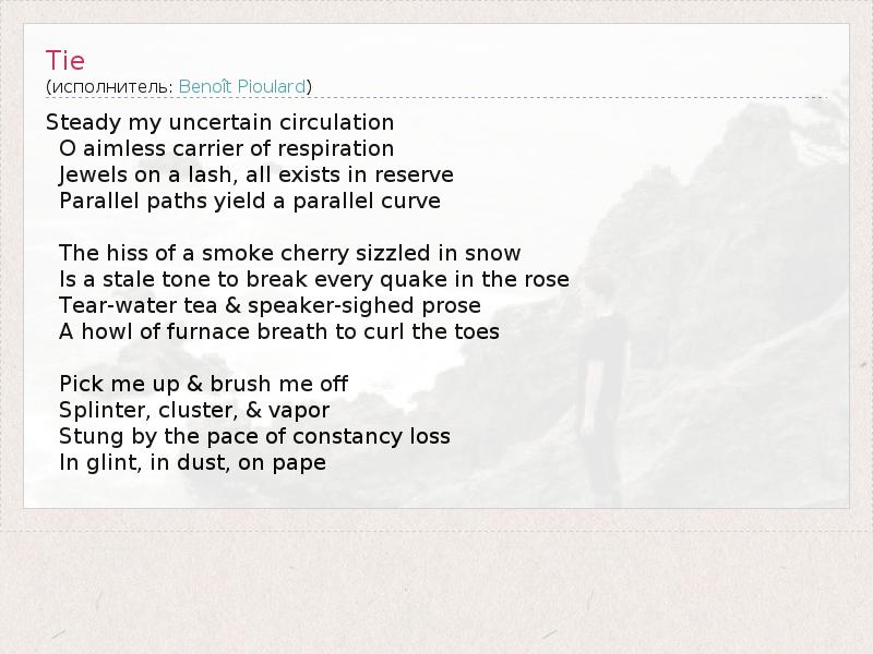 Это интересно:Поклонник музыки Арво Пярта, фильмов Хармони Корина и, как истинный хипстер, полароидных снимков, Benoit Pioulard (произносится как Бен-уa Пио-ла) (настоящее имя, вообще-то, Toмас Meлуч, и родился он не во Франции, как можно заключить из имени, а в штате Мичиган, США) загадочно объявляет: «Когда я умру, не наступит тишины, моя смерть - это вспышка шума.»Начиная с молодого возраста Thomas Meluch был очарован... продолжение