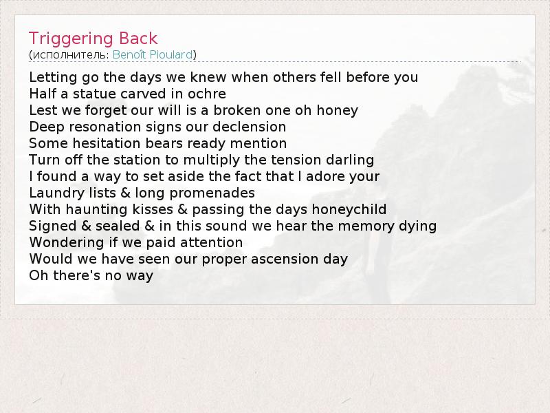 А как ты думаешь, о чем песня "Triggering Back" ?