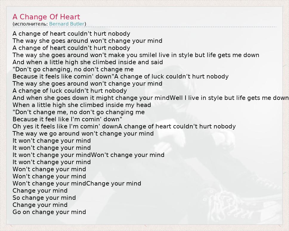 А как ты думаешь, о чем песня "A Change Of Heart" ?