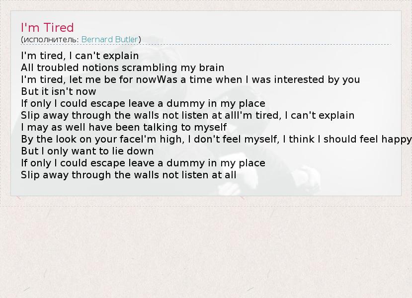 А как ты думаешь, о чем песня "I'm Tired" ?