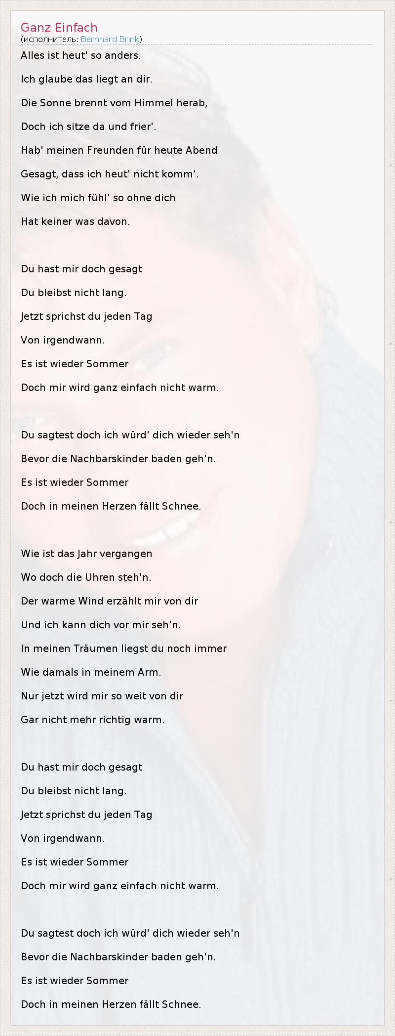 А как ты думаешь, о чем песня "Ganz Einfach" ?