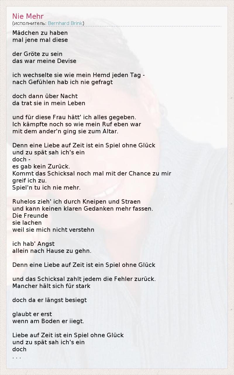 А как ты думаешь, о чем песня "Nie Mehr" ?
