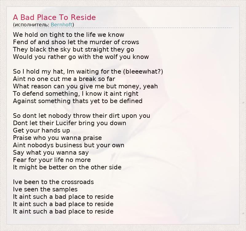 А как ты думаешь, о чем песня "A Bad Place To Reside" ?