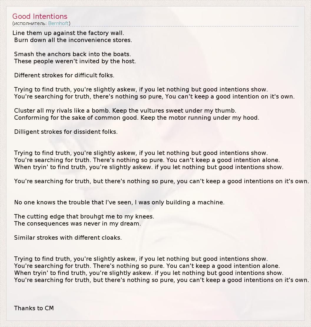 А как ты думаешь, о чем песня "Good Intentions" ?