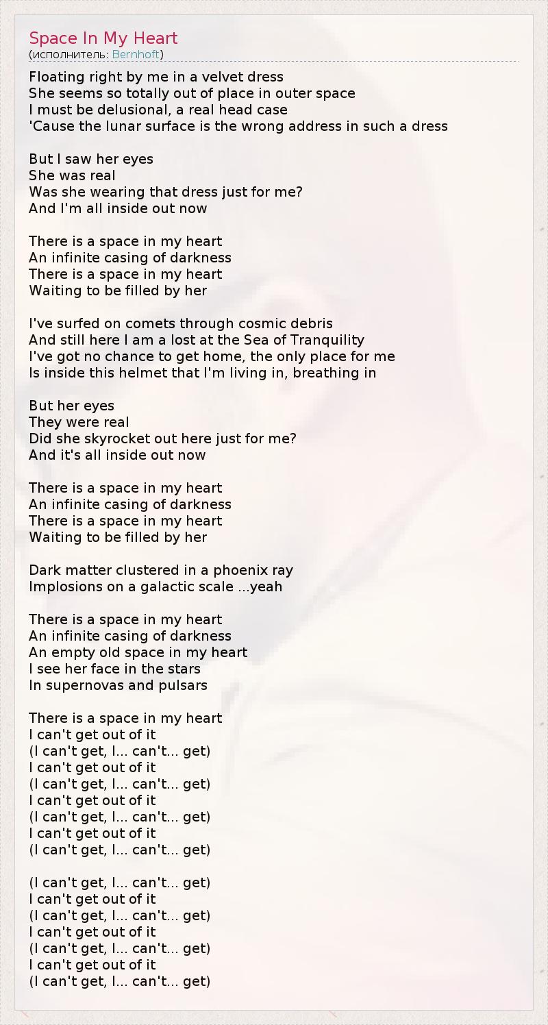 А как ты думаешь, о чем песня "Space In My Heart" ?