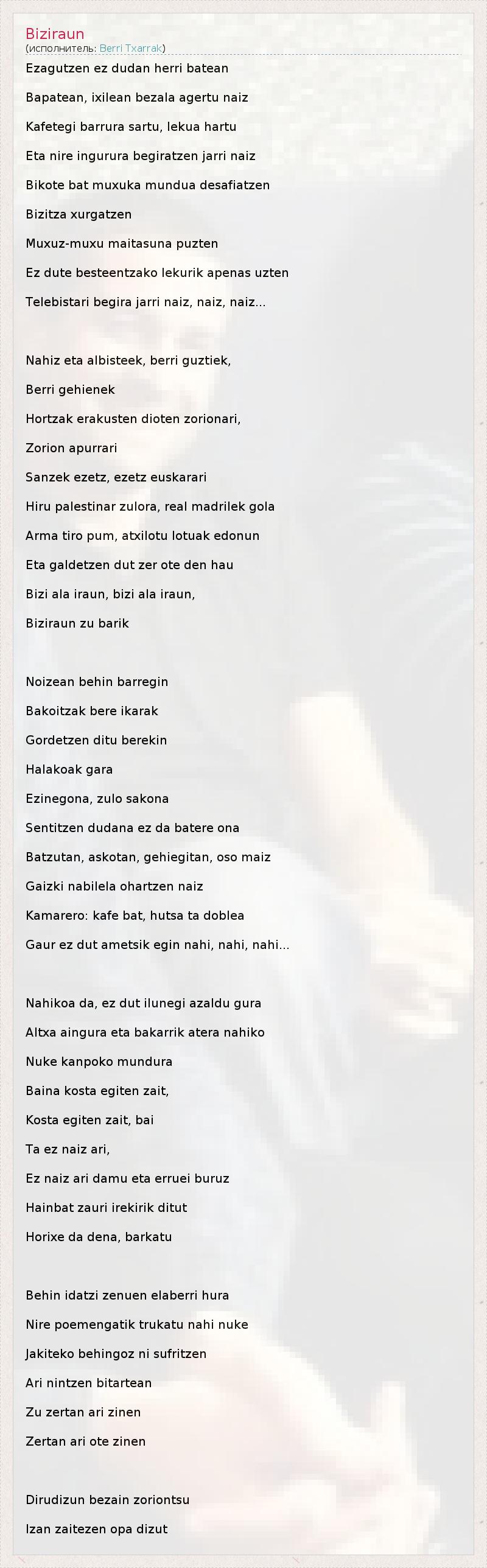 Это интересно:Berri Txarrak (баск. "Плохие новости") - испанская группа из Наварры, исполняющая музыку в стиле альтернативный рок / панк/ нью метал. Группа была основана в городе Лекумберри в 1994 году. Коллектив изначально являлся сайд-проектом музыкантов Gorka Urbizu (вокал, гитара) и Aitor Goikoetxea (ударные). В 1997 году они стали уделять все больше внимания своей группе, к которой также присоединились новые участники:... продолжение