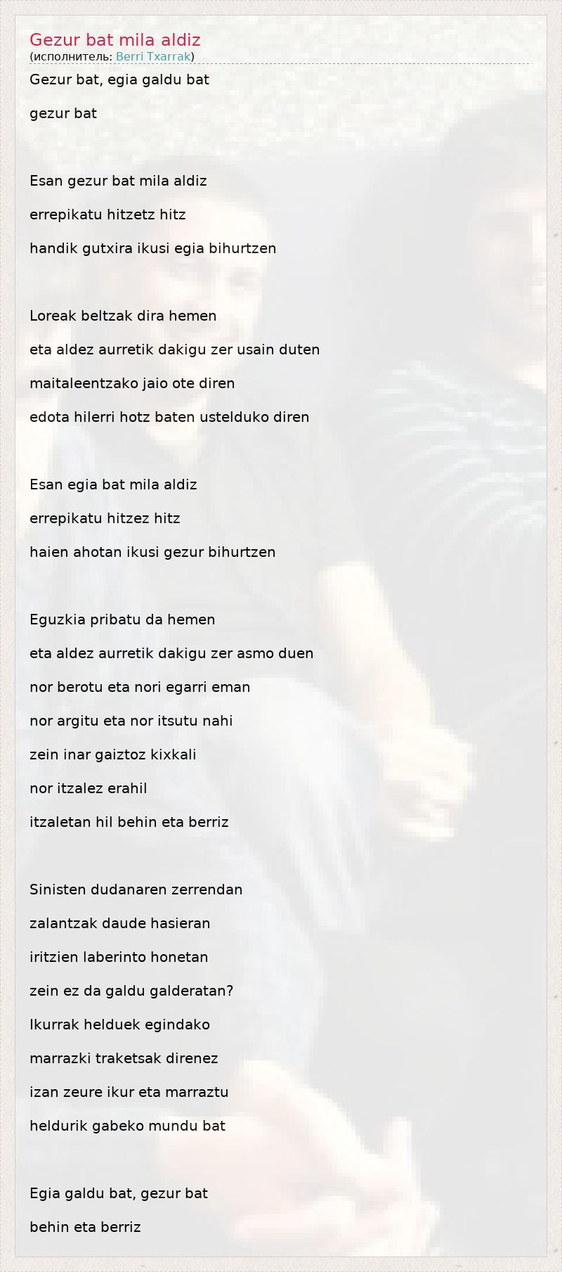 А как ты думаешь, о чем песня "Gezur bat mila aldiz" ?