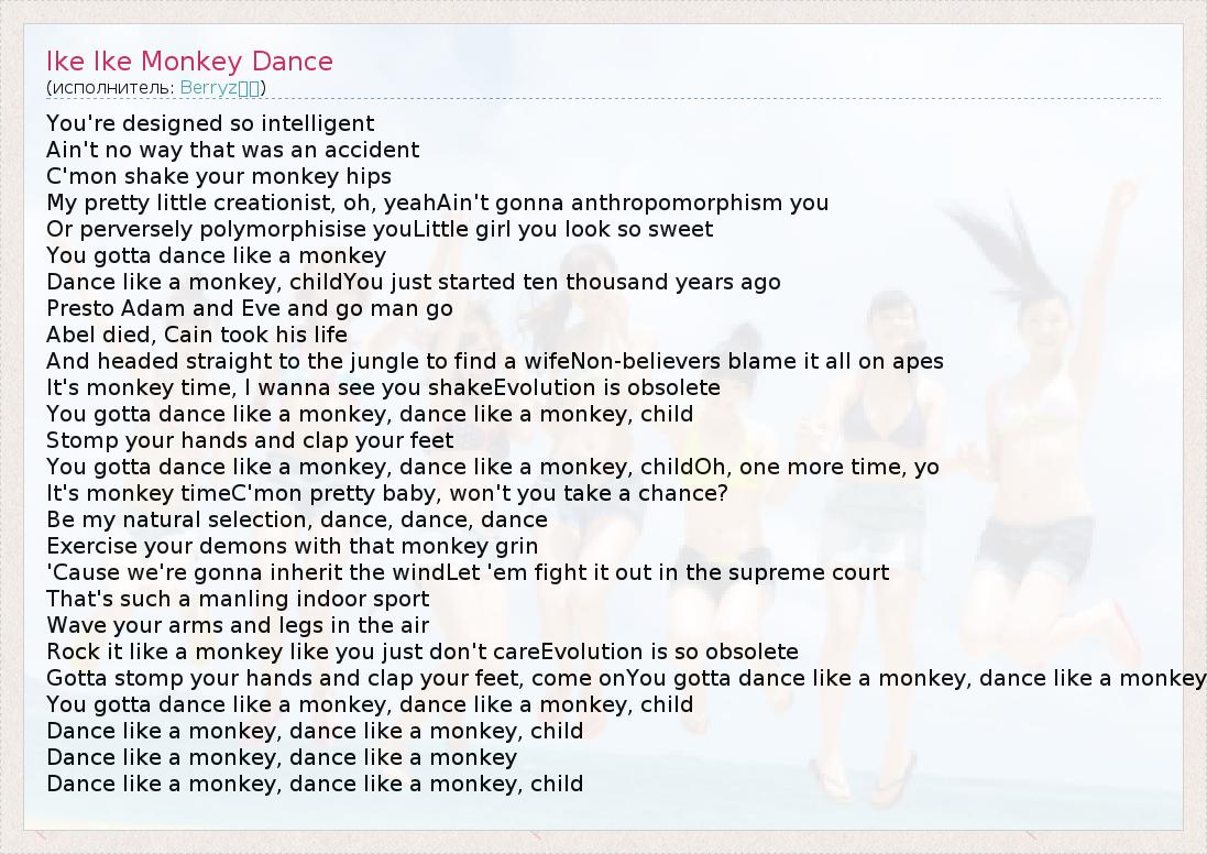 А как ты думаешь, о чем песня "Ike Ike Monkey Dance" ?