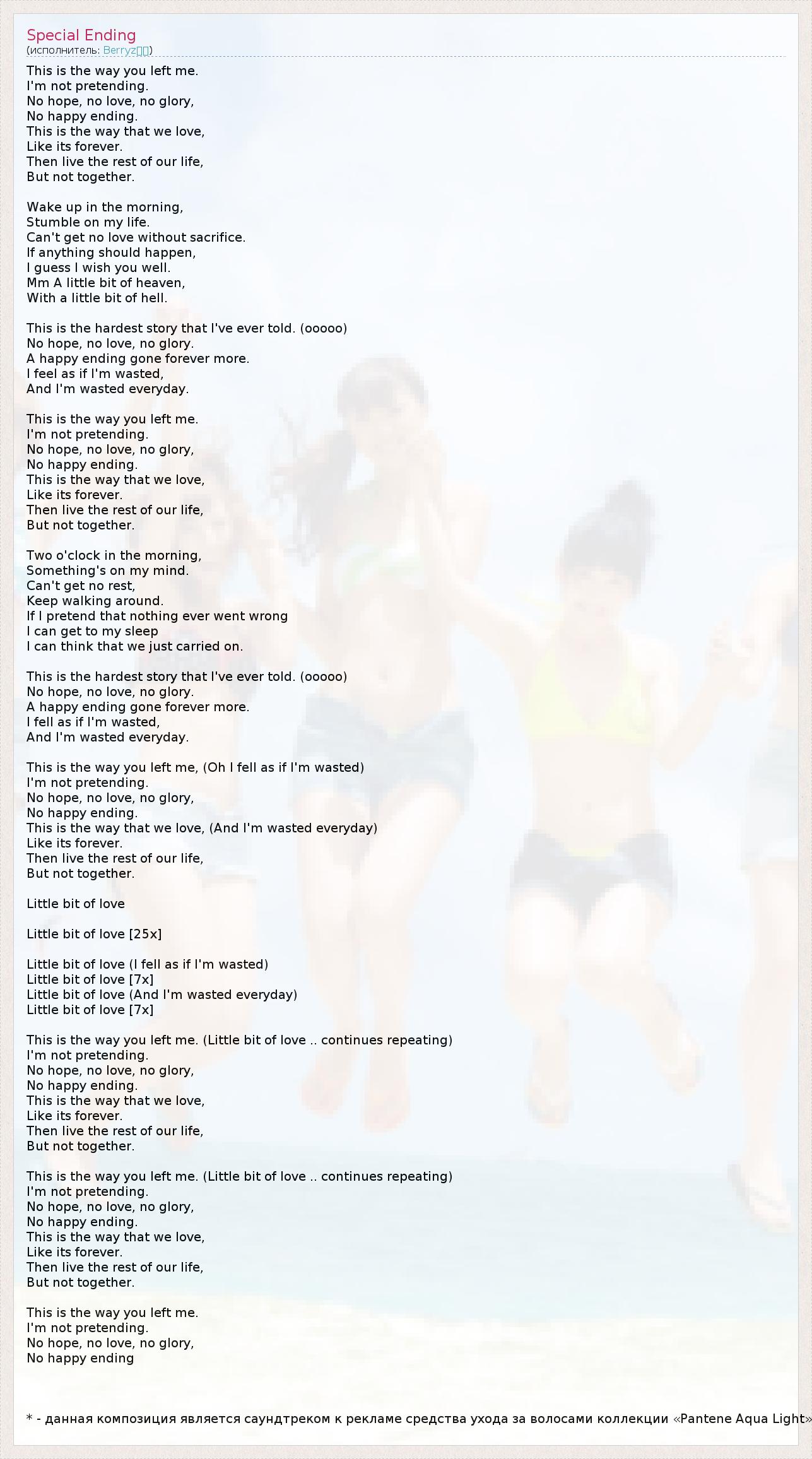 * - данная композиция является саундтреком к рекламе средства ухода за волосами коллекции «Pantene Aqua Light»