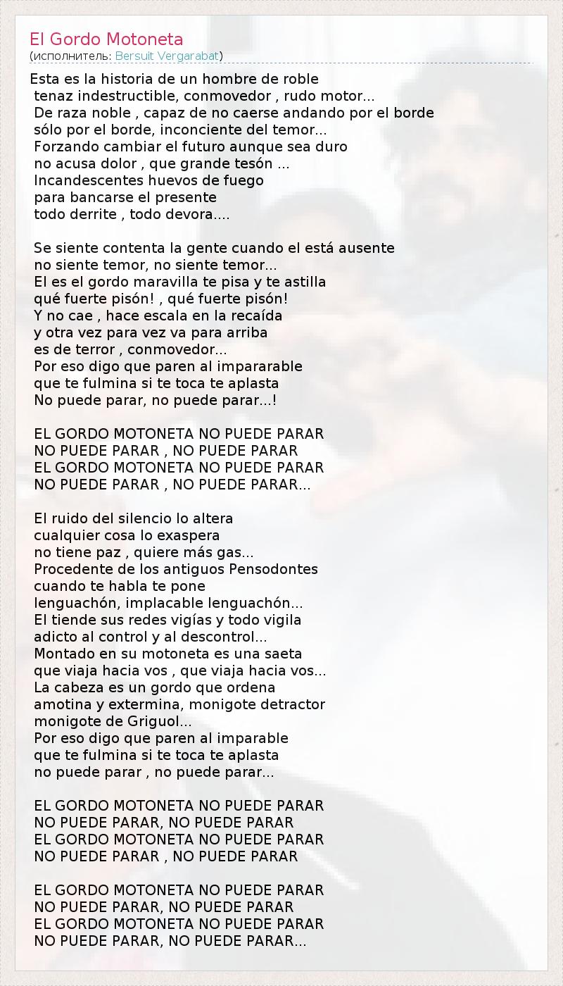 А как ты думаешь, о чем песня "El Gordo Motoneta" ?