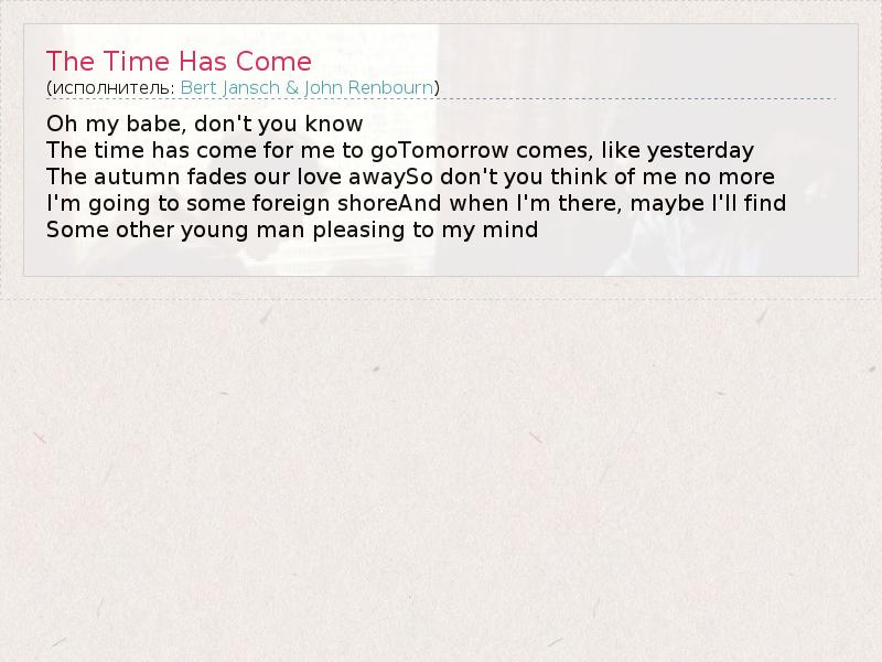 А как ты думаешь, о чем песня "The Time Has Come" ?
