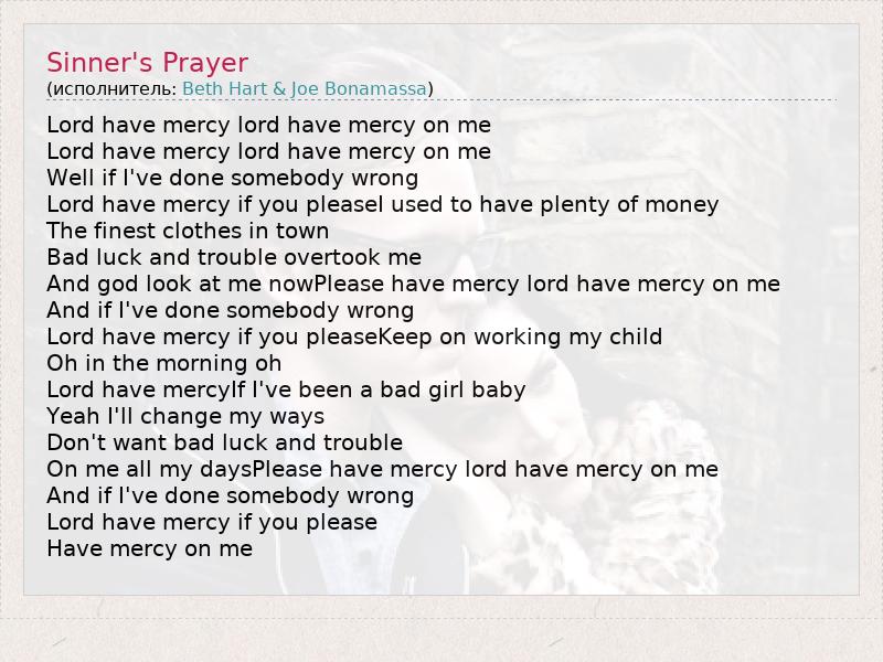 А как ты думаешь, о чем песня "Sinner's Prayer" ?