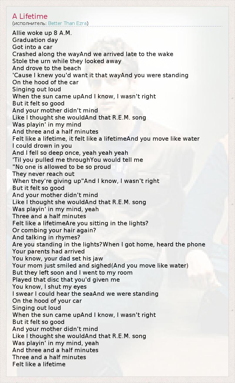 А как ты думаешь, о чем песня "A Lifetime" ?