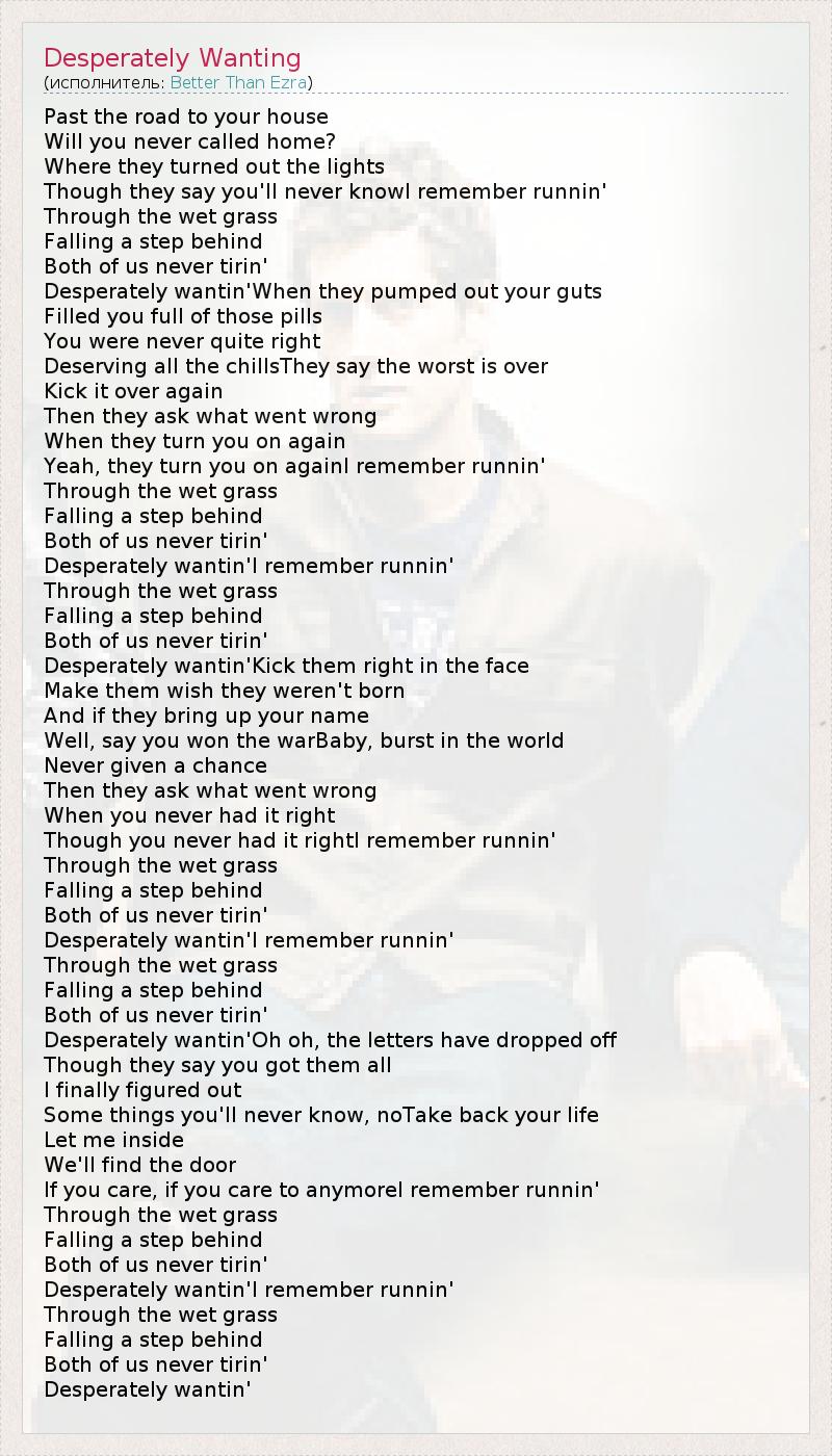 А как ты думаешь, о чем песня "Desperately Wanting" ?