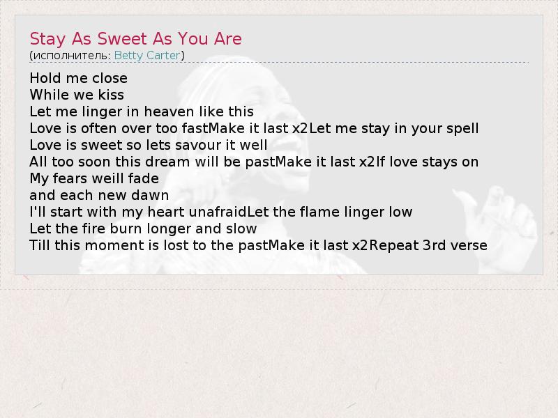 ГлавнаяИсполнителиBetty CarterStay As Sweet As You Are