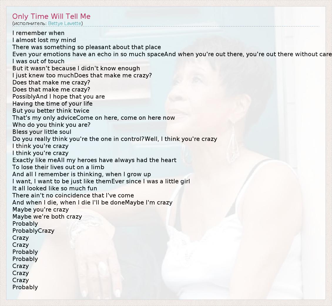 А как ты думаешь, о чем песня "Only Time Will Tell Me" ?