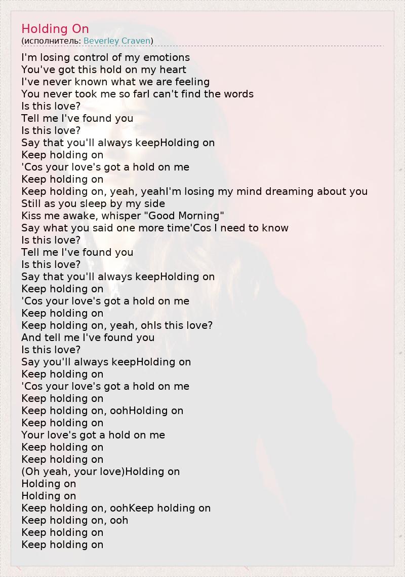 Keep holding on, yeah, yeahI'm losing my mind dreaming about you