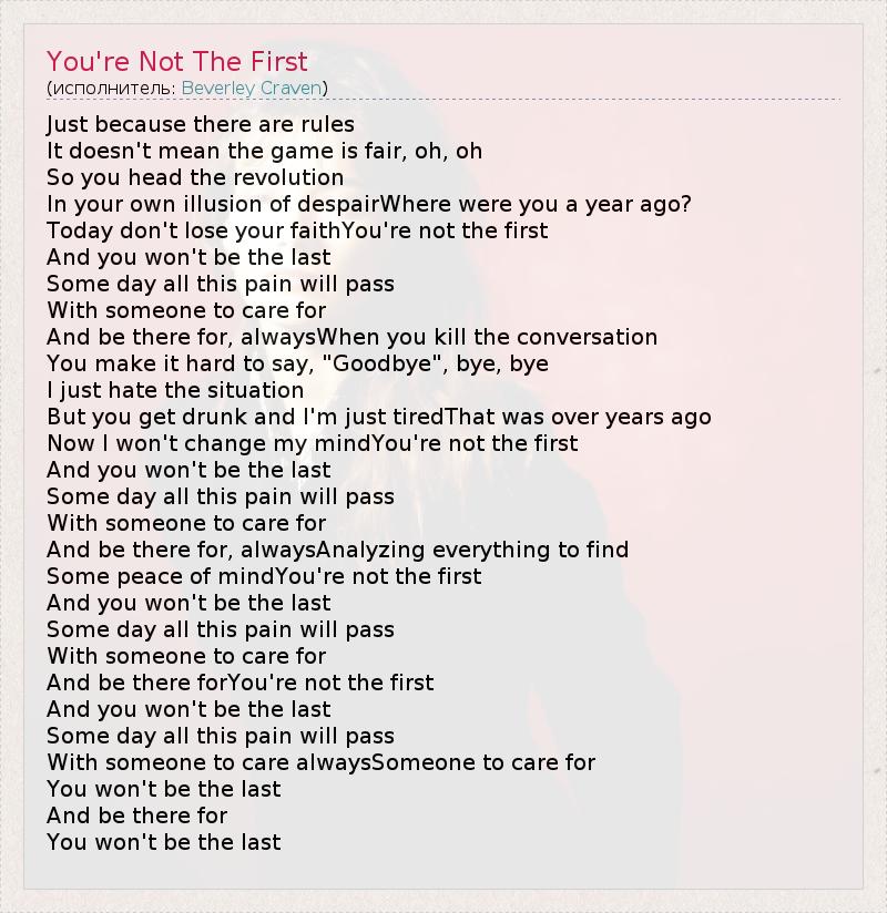 А как ты думаешь, о чем песня "You're Not The First" ?