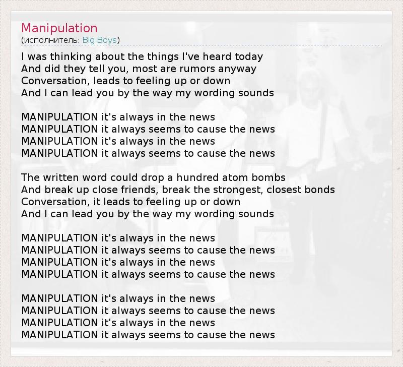 А как ты думаешь, о чем песня "Manipulation" ?