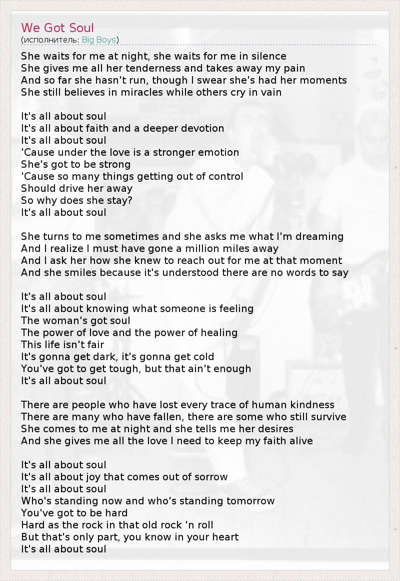 А как ты думаешь, о чем песня "We Got Soul" ?