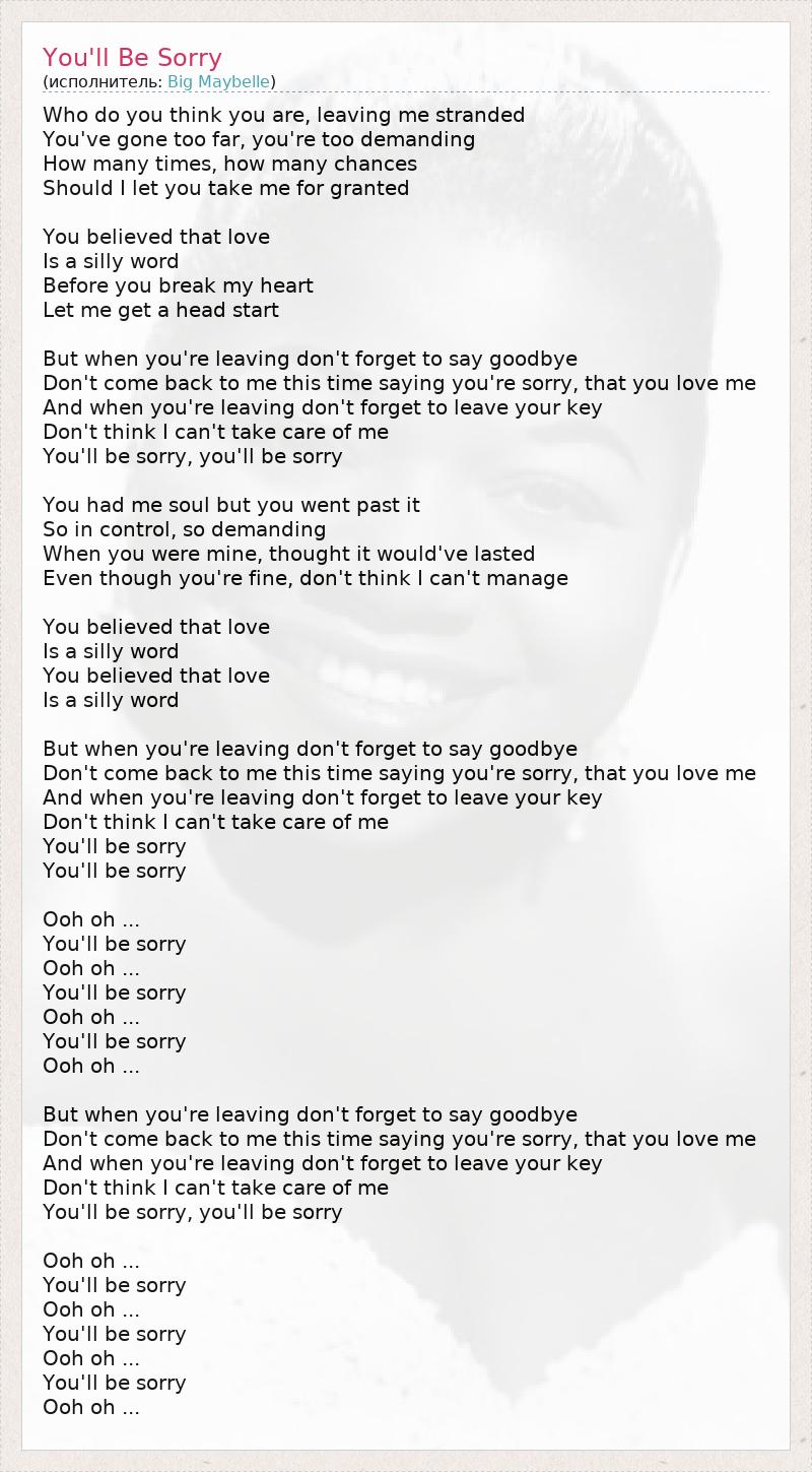 А как ты думаешь, о чем песня "You'll Be Sorry" ?