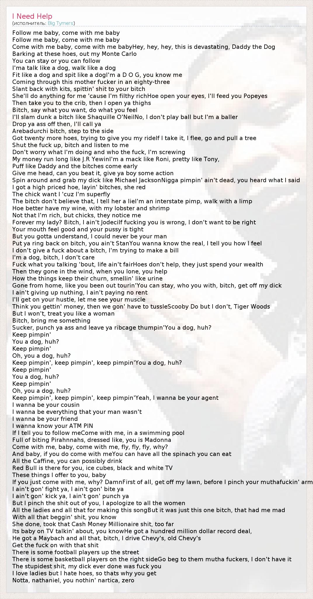 All the ladies and all that for making this songBut it was just this one bitch, that had me mad