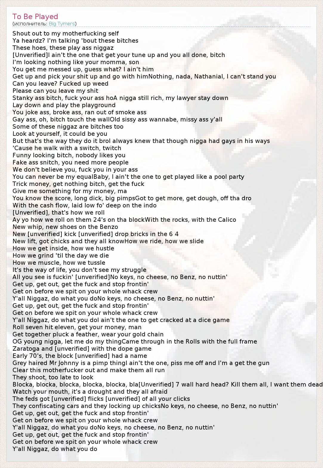 [Unverified]I ain't the one that get your tune up and you all done, bitch
