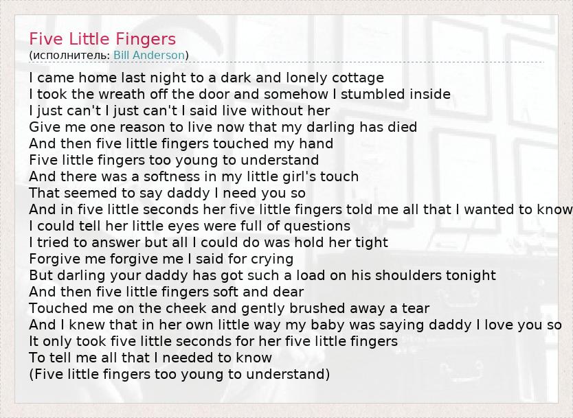 А как ты думаешь, о чем песня "Five Little Fingers" ?