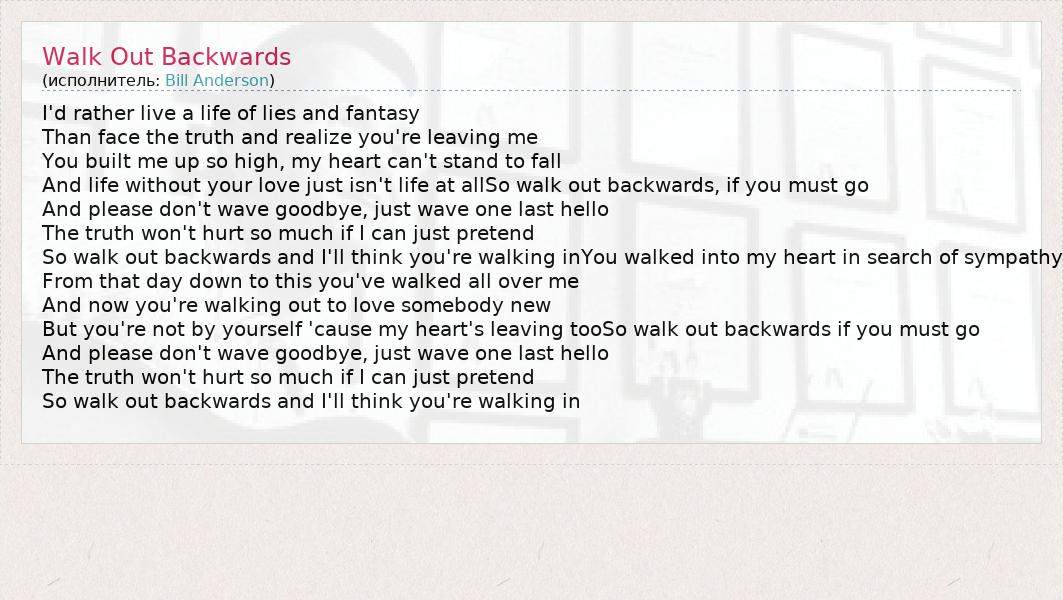 And life without your love just isn't life at allSo walk out backwards, if you must go