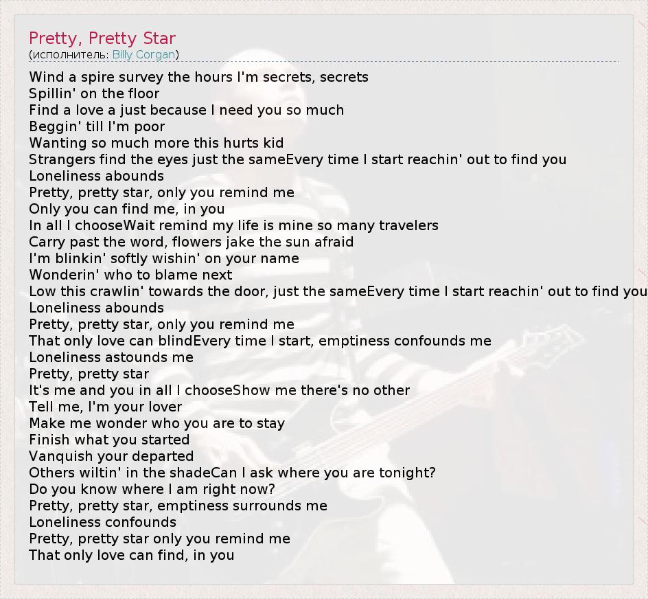 А как ты думаешь, о чем песня "Pretty, Pretty Star" ?