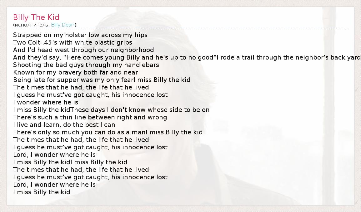 А как ты думаешь, о чем песня "Billy The Kid" ?