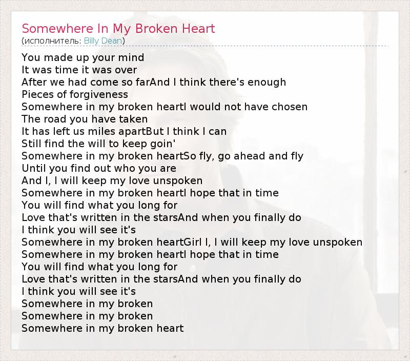 А как ты думаешь, о чем песня "Somewhere In My Broken Heart" ?