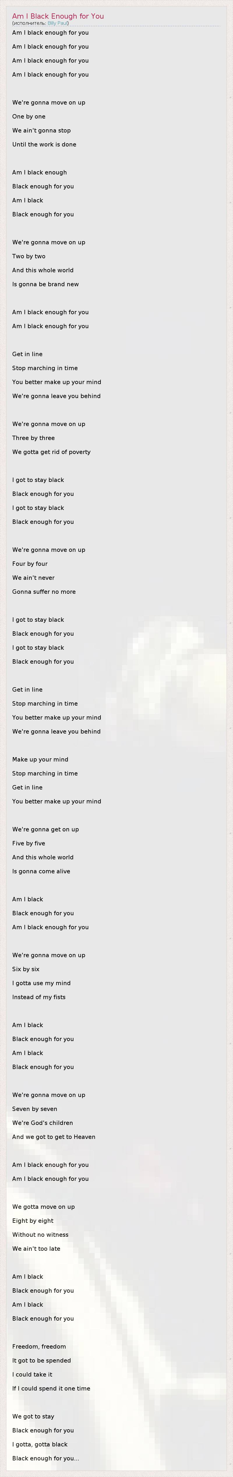 А как ты думаешь, о чем песня "Am I Black Enough for You" ?