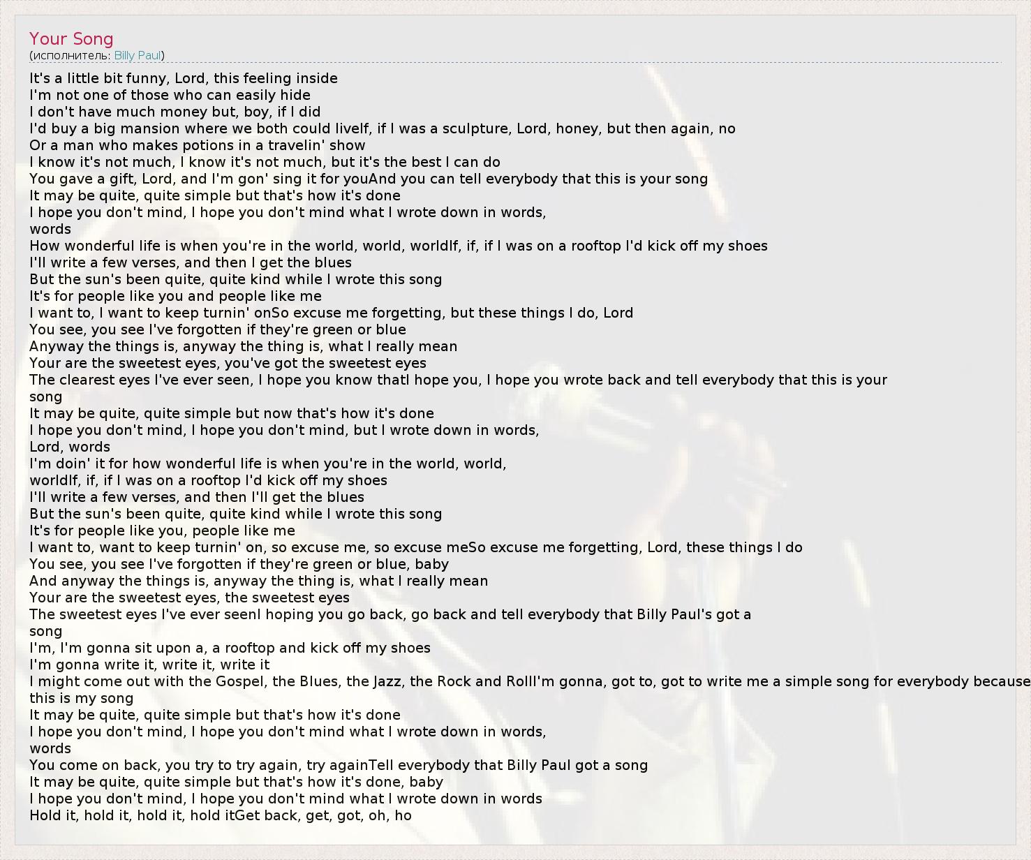 You come on back, you try to try again, try againTell everybody that Billy Paul got a song
