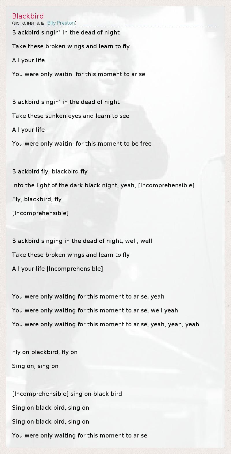 Fly on blackbird, fly on